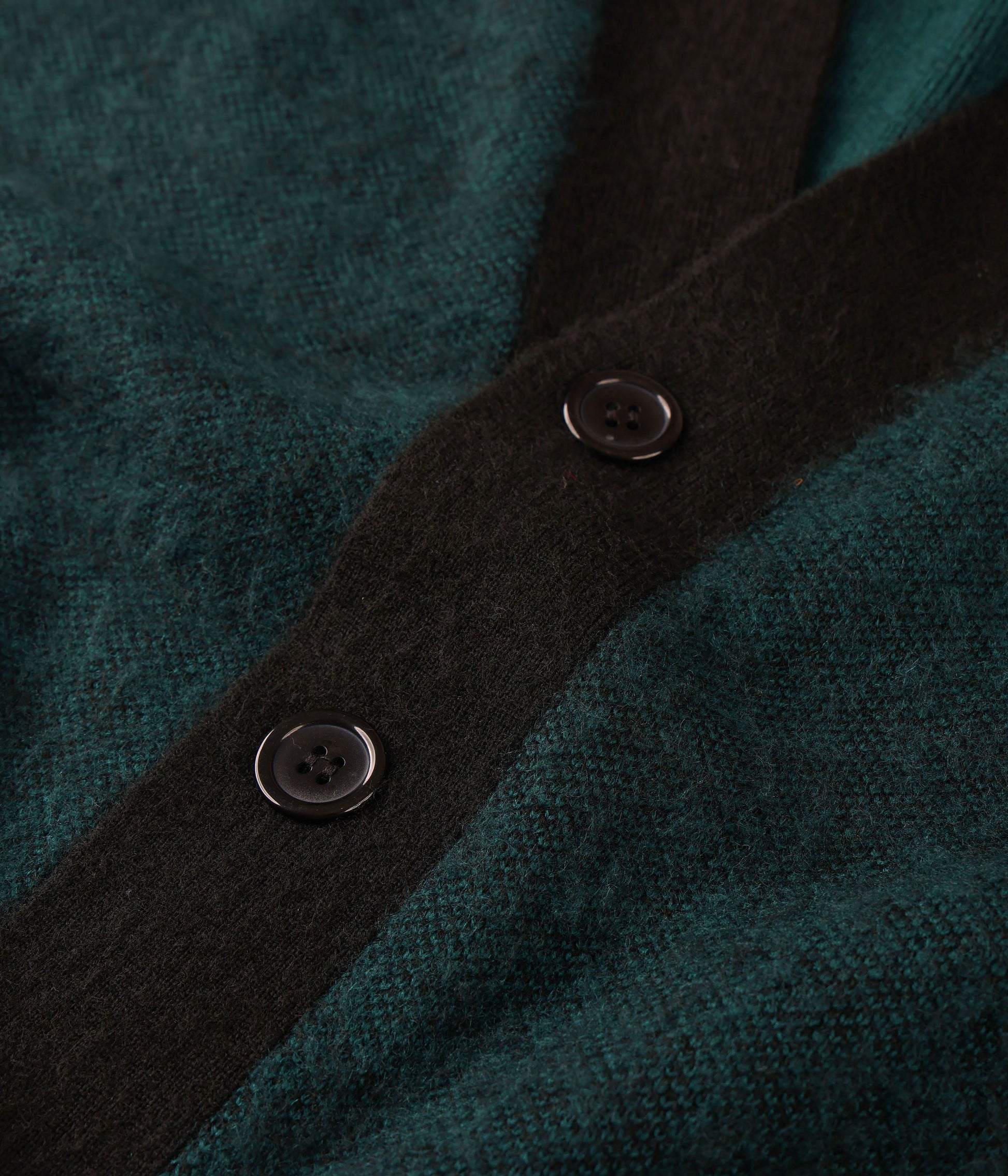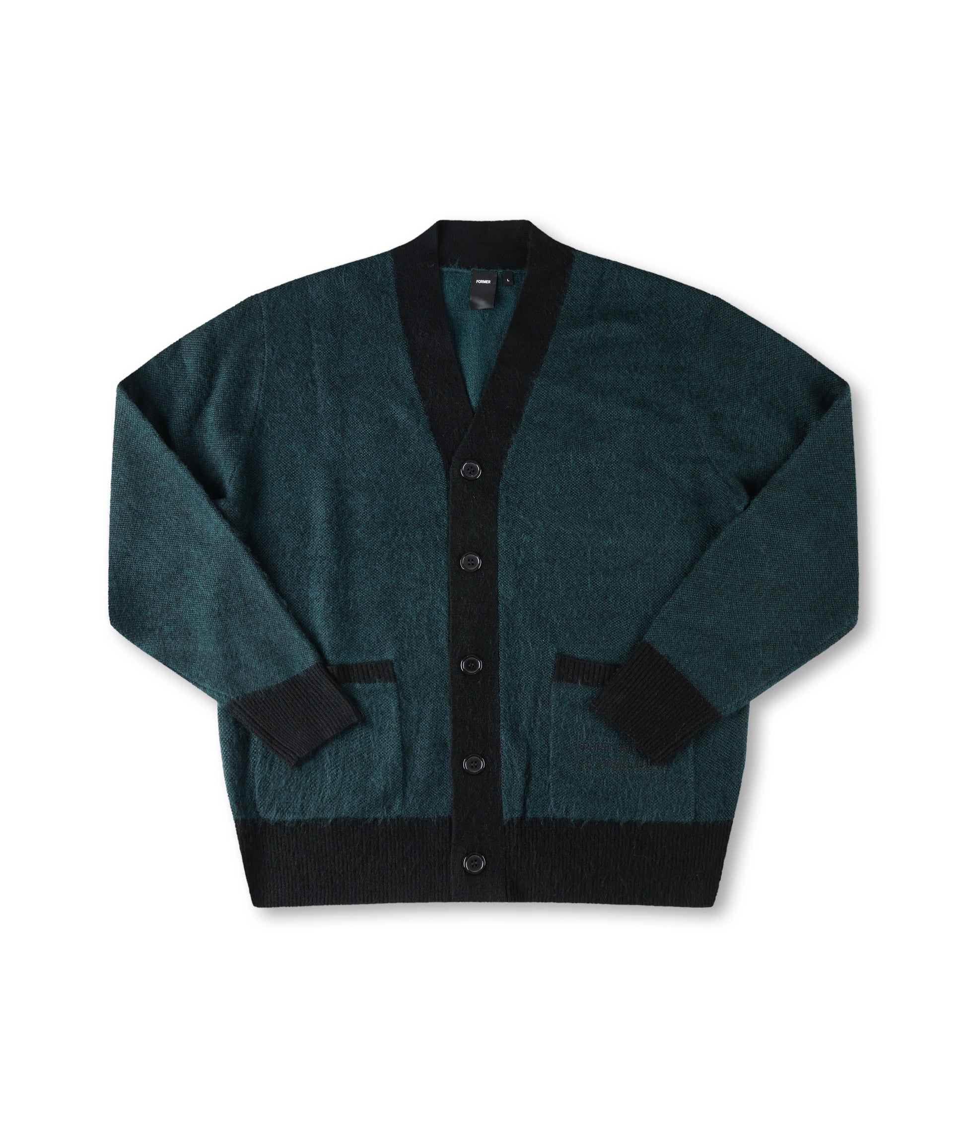 Crafted in a premium 100% acrylic 12 gauge knit with brushing and designed in collaboration with FORMER founder Austyn Gillette. Delivered in our FORMER cardigan fit. Featuring embroidery on pocket, contrast placket and rib detail, and button closure.