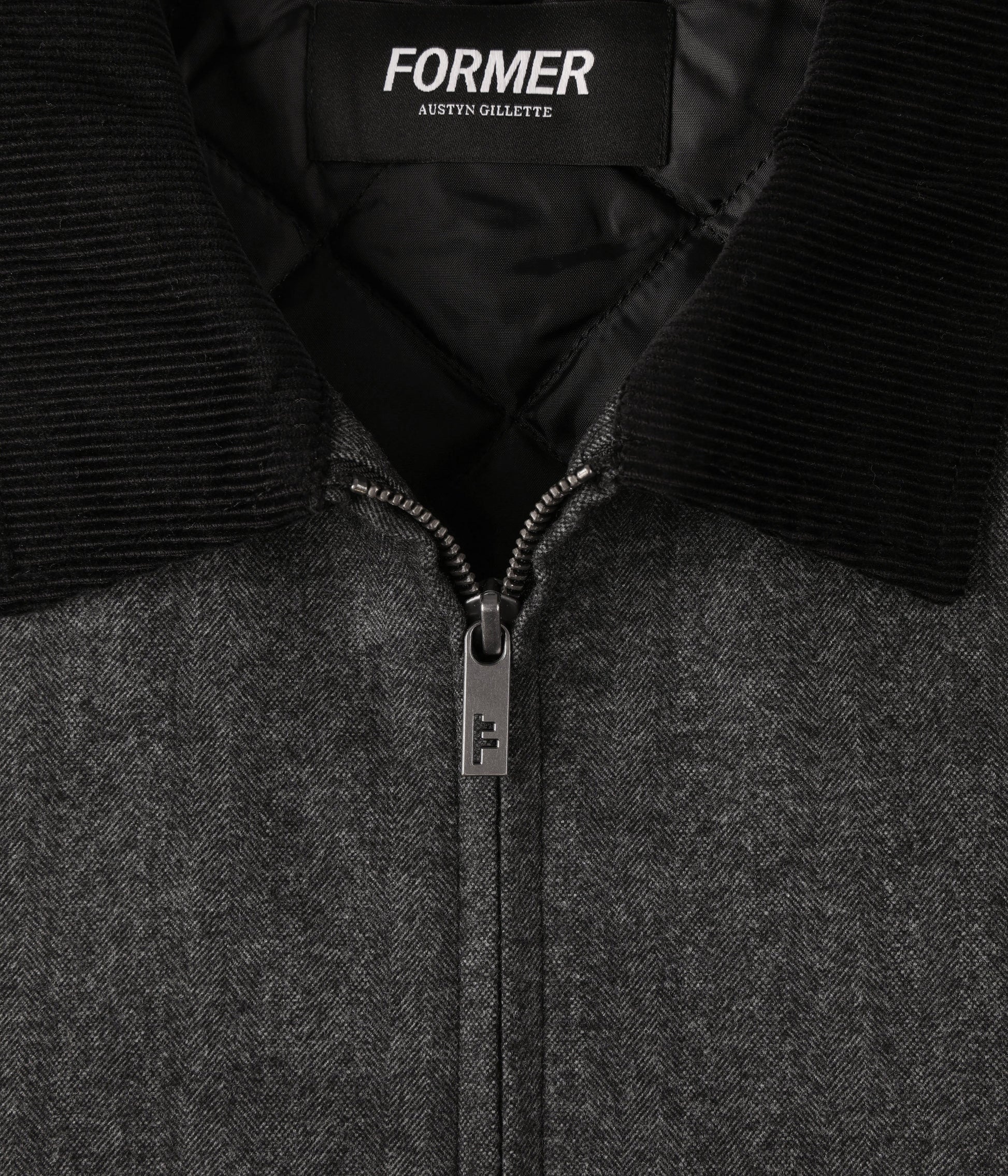 Crafted in a premium wool blend (62% polyester 28% rayon 8% wool 2% spandex) and designed in collaboration with FORMER founder Austyn Gillette. Delivered in our FORMER Cage jacket fit. Featuring diamond quilt lining, double front pockets, Franchise F embroidery, Franchise F metal shanks, Franchise F logo metal zip, and contrast corduroy collar and pocket binding.