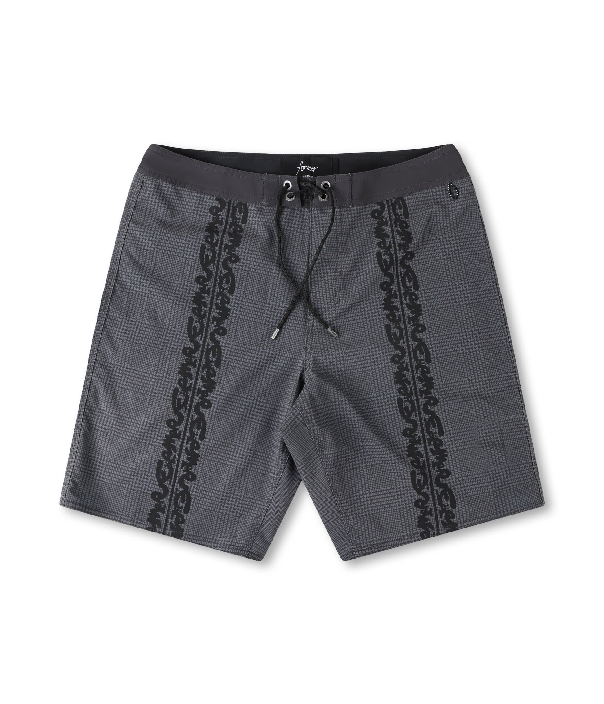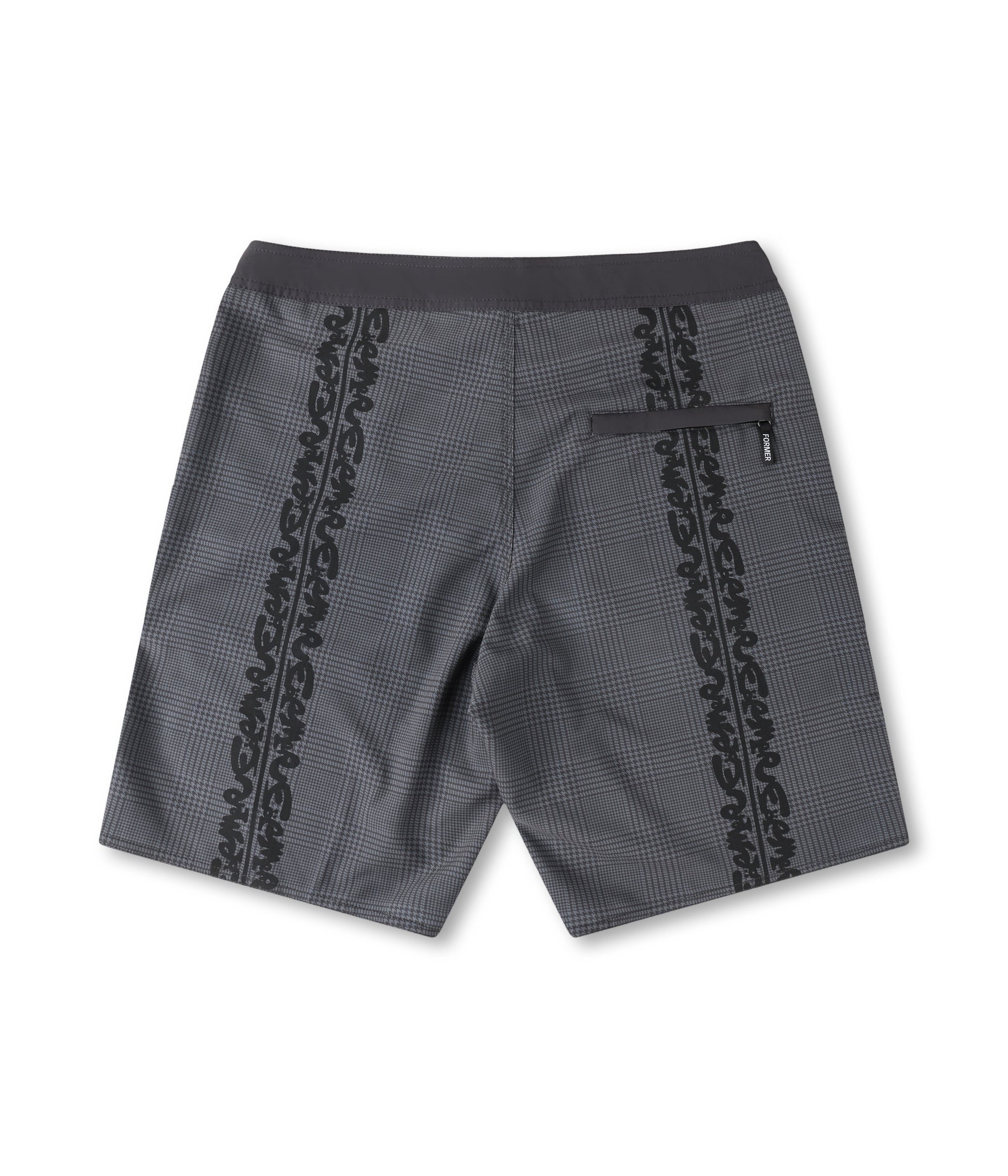 Constructed from a premium polyester-elastane blend (93% polyester 7% elastane) 4-way stretch fabric. Delivered in our Anderson 18.5" trunk fit. Featuring sublimated yardage print with screenprint front graphic, invisible concealed coil zip with Legacy woven zip puller, elastic key loop, and fixed waist.