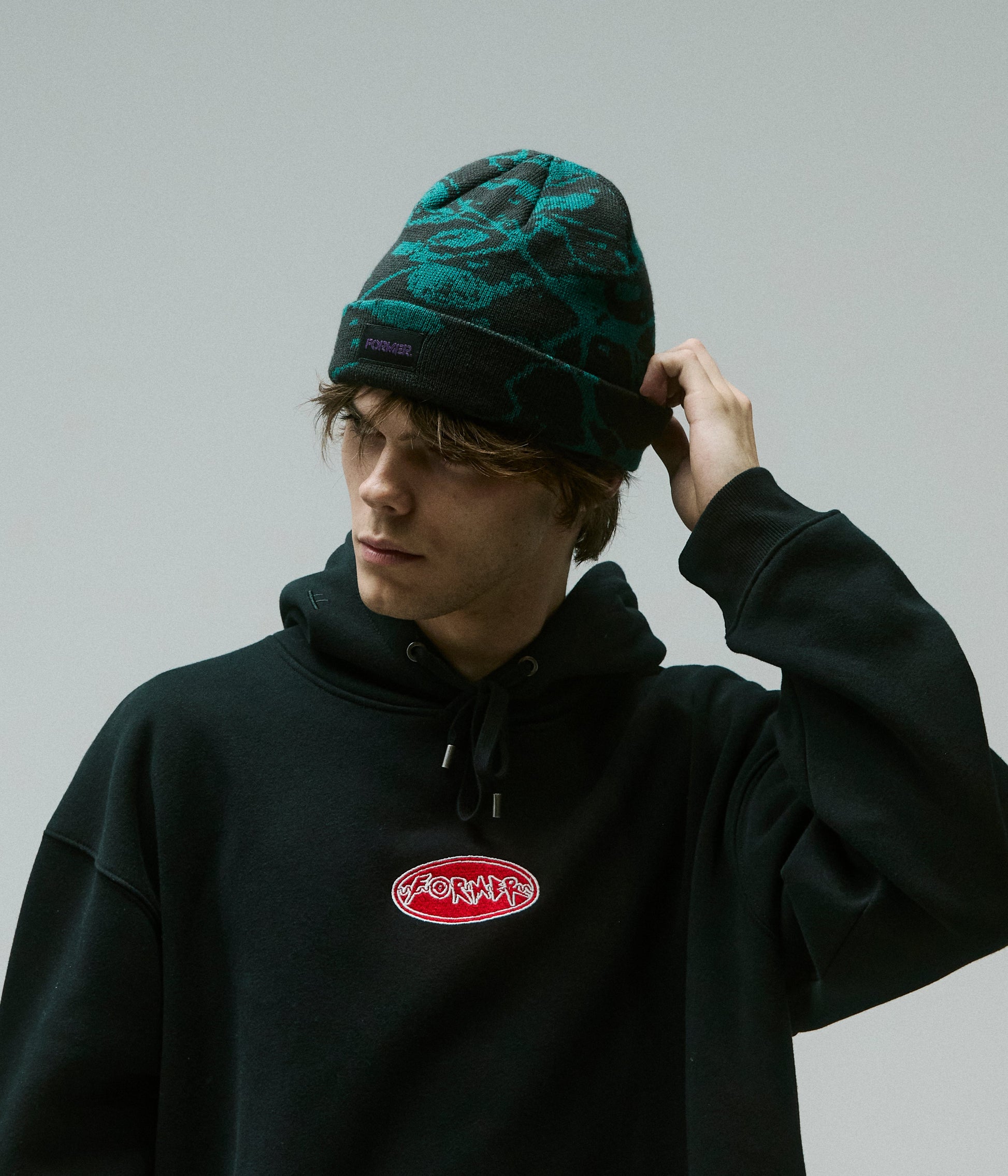 Delivered in a comfortable knitted design in our folded beanie fit. Featuring jacquard artwork and woven label on fold.