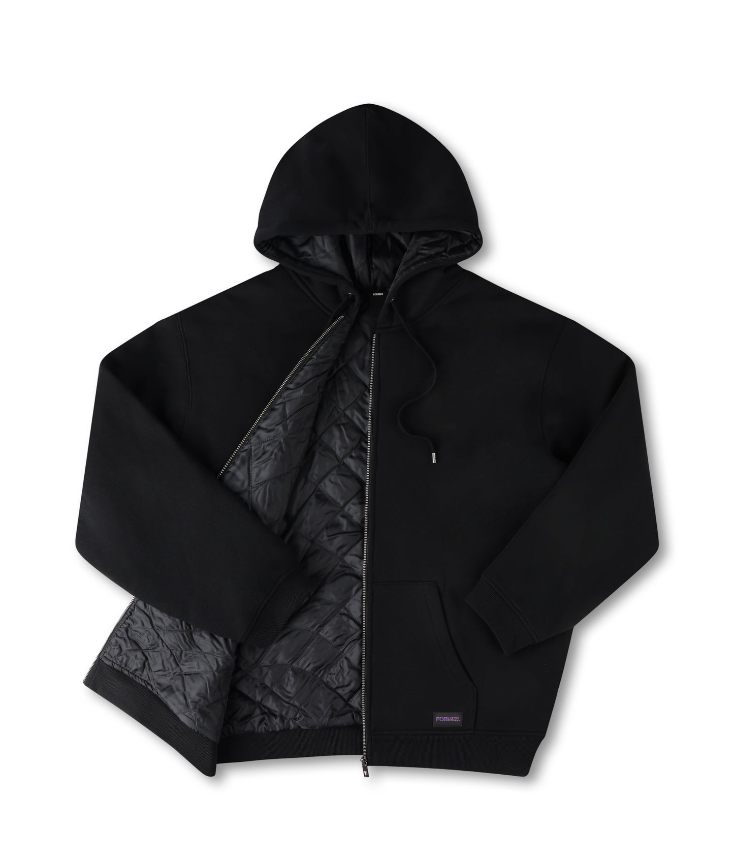 Designed in a premium 320GSM cotton faced brushed fleece with 50% cotton 50% polyester for warmth and comfort, and delivered in our standard FORMER hood fit. Featuring drawcord closure, quilted lining, woven label on pocket, Franchise F tonal embroidery on hood, front pocket, and FORMER branded metal aglets.