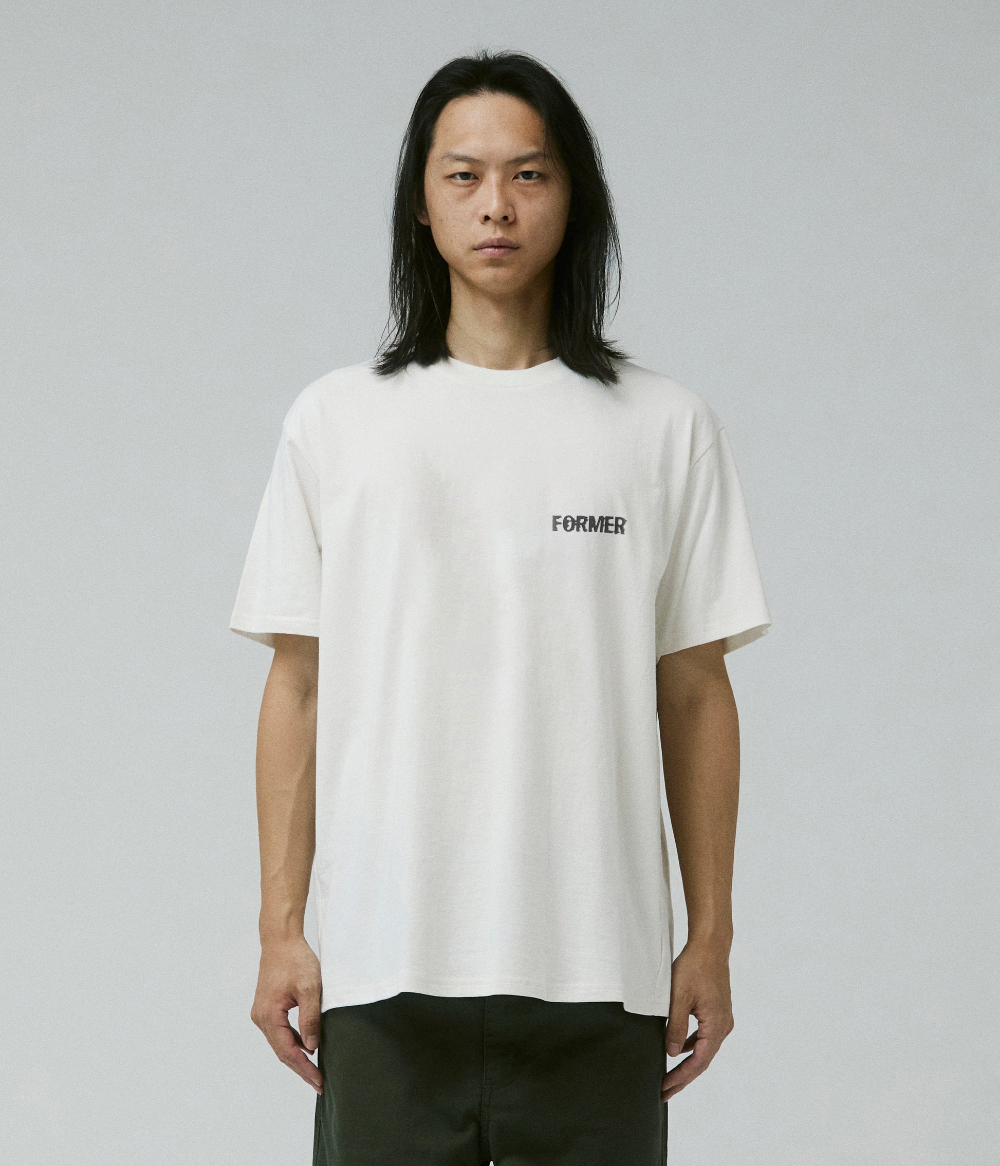 Crafted from 200G 100% cotton with a pre-wash finish for softness and comfort, this T-shirt is designed in the standard FORMER fit. It features left chest and back graphics in a soft hand plastisol screen print for a signature, clean look.