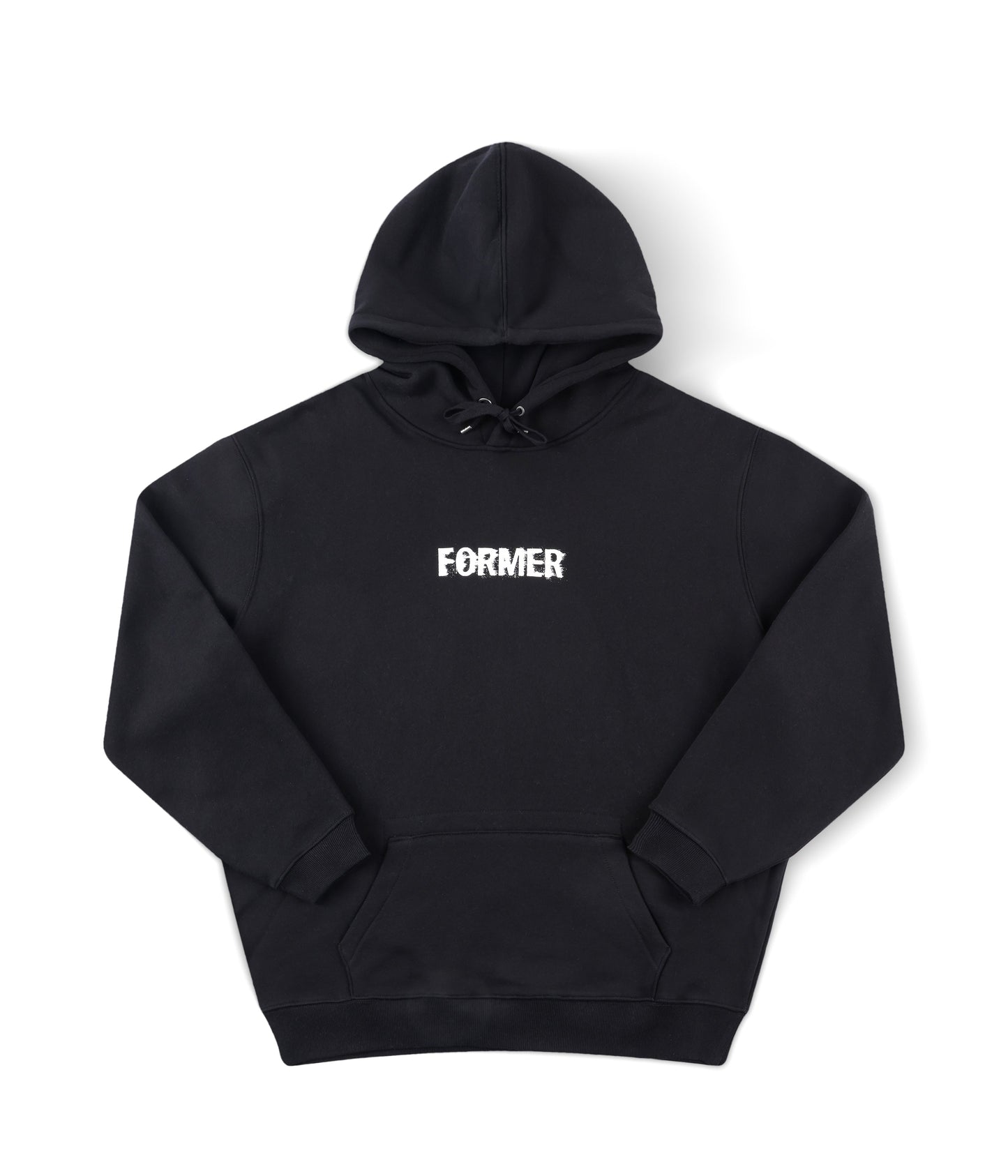 Crafted from a 50% cotton, 50% polyester 320GSM fleece for warmth comfort, designed in our signature FORMER hood fit. This hoodie features a front graphic in a soft hand plastisol screen print, a kangaroo pocket with military stitch detailing, FORMER branded metal aglet drawcords, and a subtle Franchise F logo embroidered on the hood.