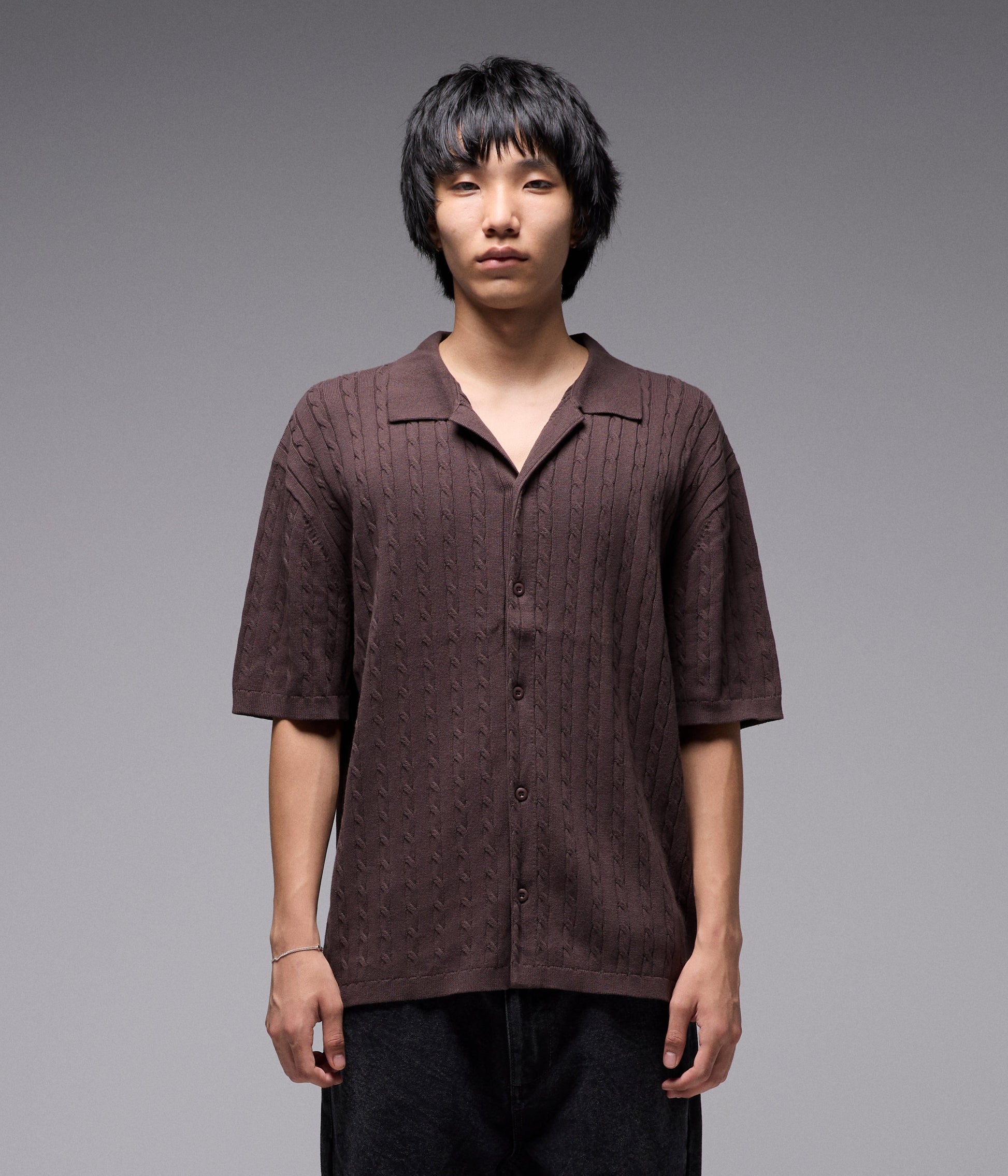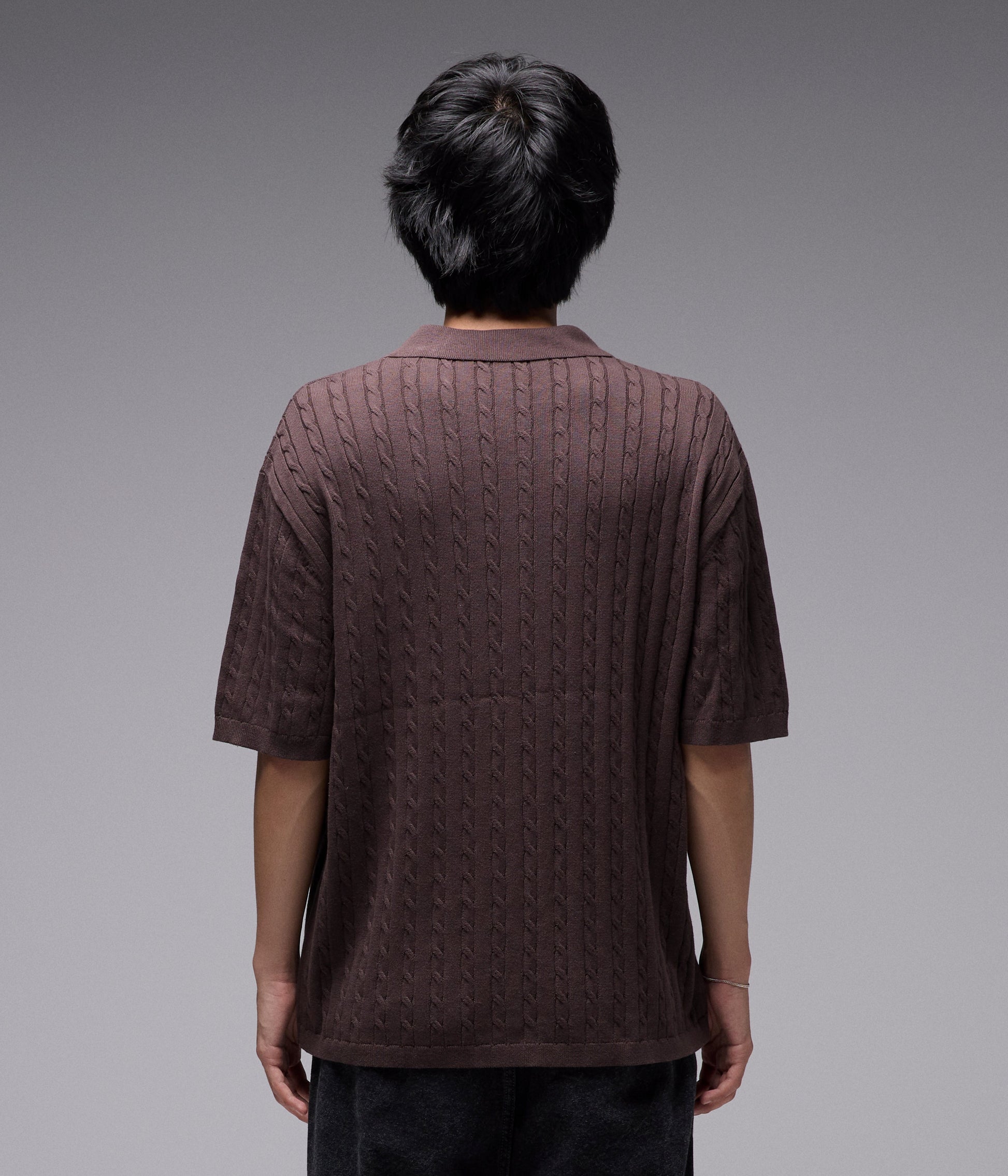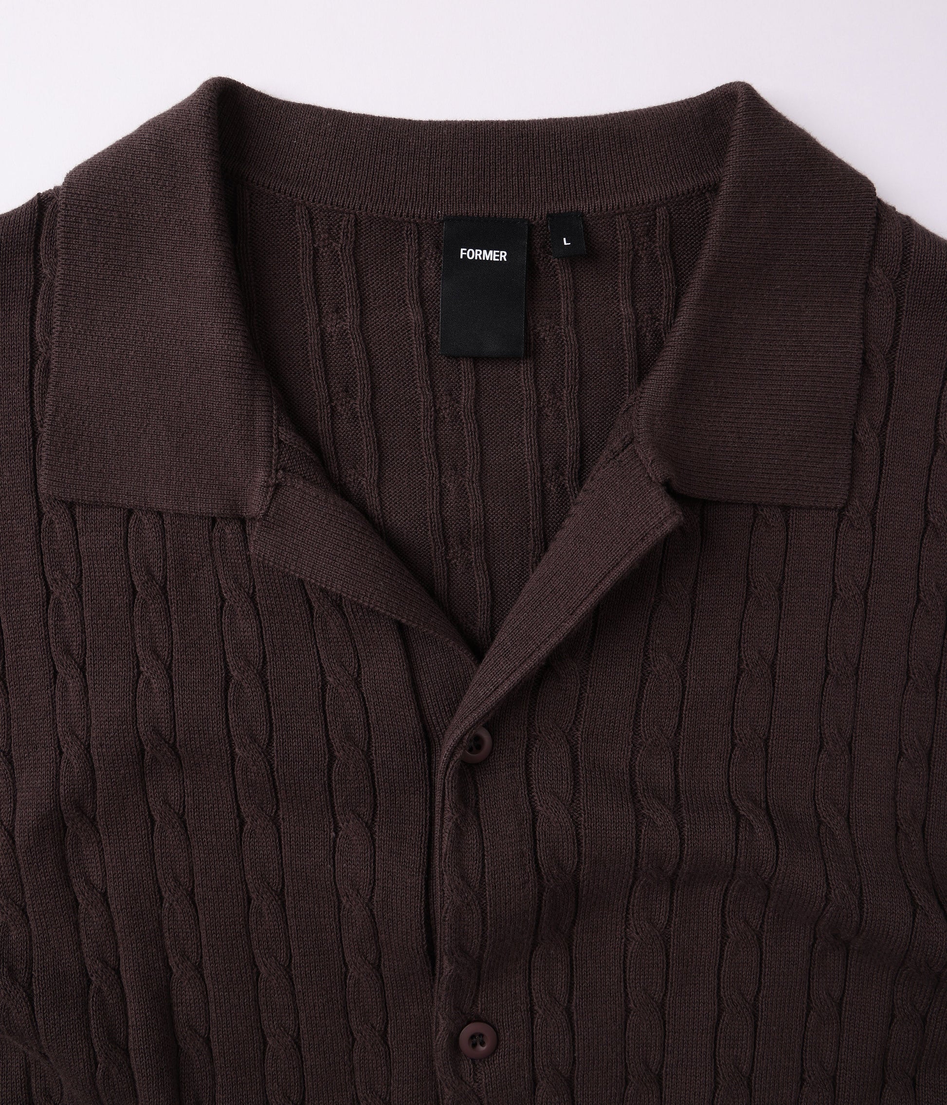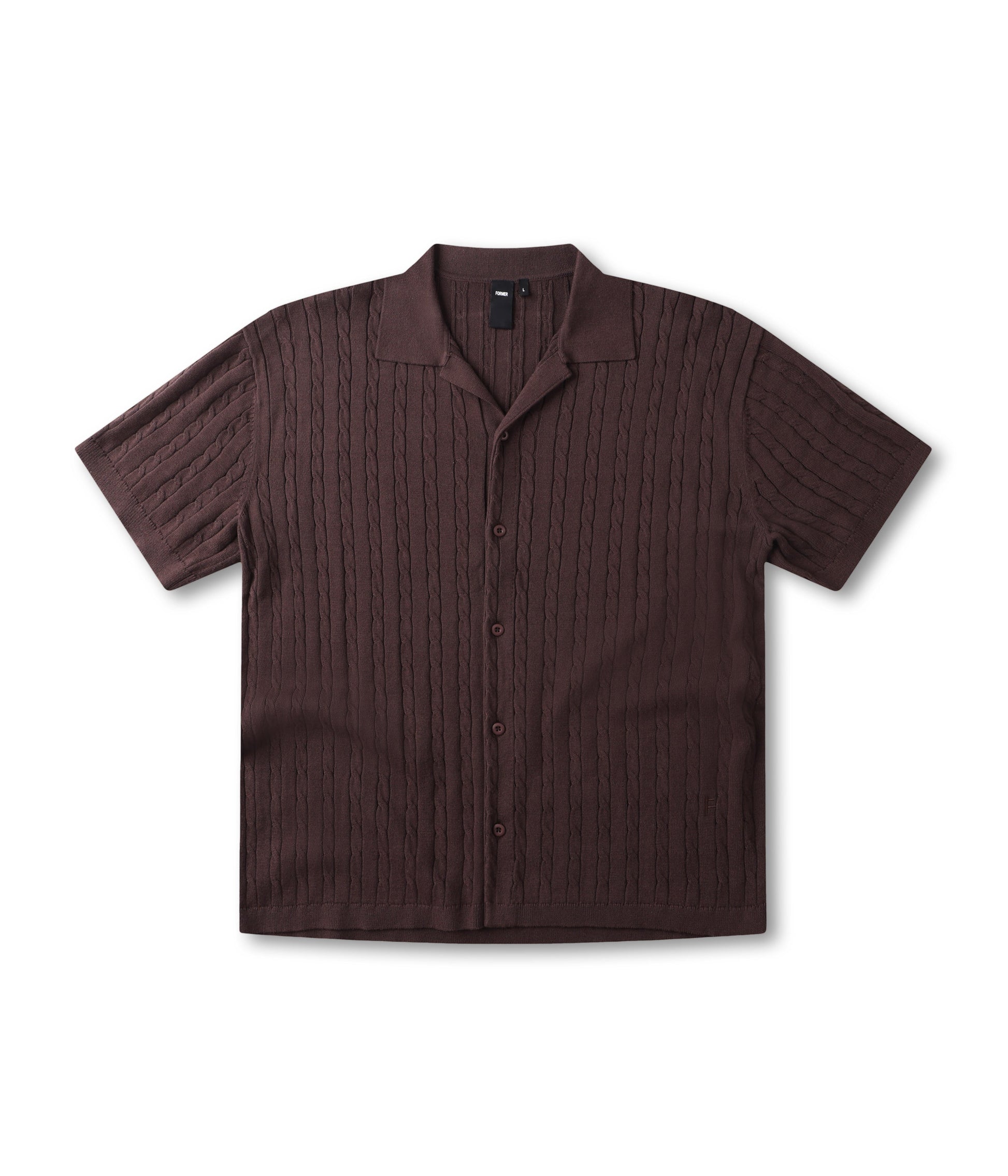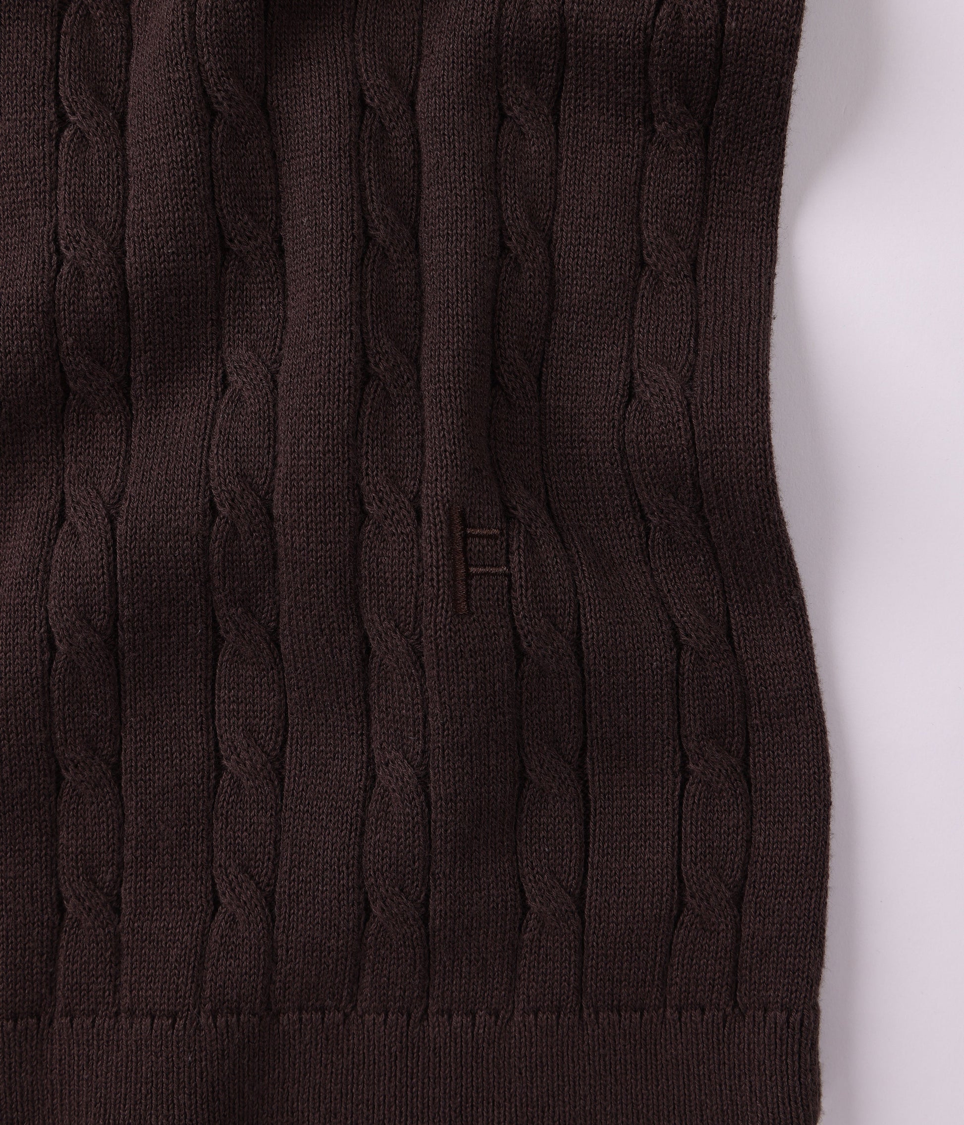 CABLE STITCH KNIT / 100% COTTON / MARILYN SS KNIT FIT / FRANCHISE F EMB ON HIP / BUTTON CLOSURE