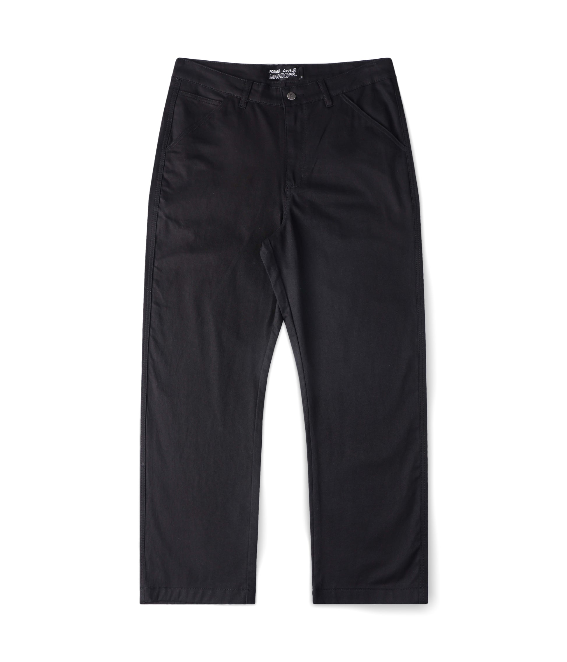 Designed by FORMER founder Dane Reynolds, the Reynolds Work Pant is our best selling baggy fit with a wide silhouette and 19” leg opening. Constructed from a durable and heavyweight 100% cotton twill fabric, featuring a fixed waist, signature pop colour Crux logo woven label on back pocket, double workwear pockets, and FORMER branded metal shank button.