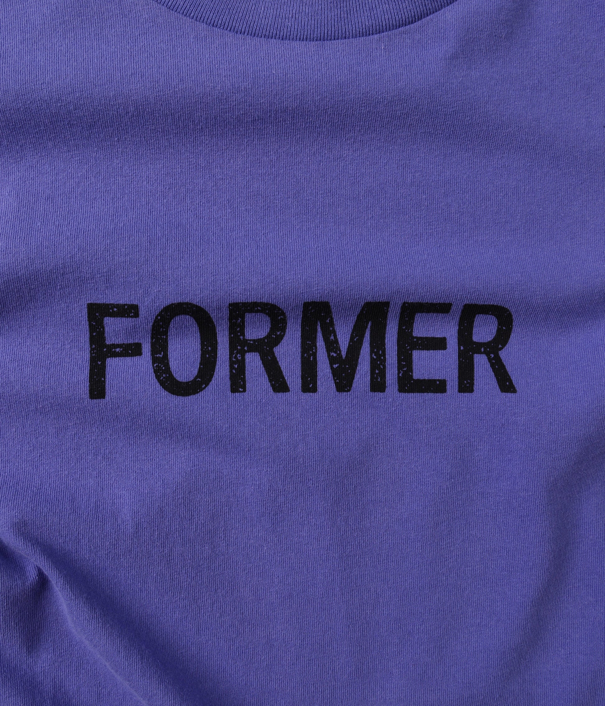 Designed in a premium 200GSM jersey cotton and delivered in our standard FORMER T-shirt block for a relaxed and comfortable fit. Featuring a seasonal front graphic in a soft hand plastisol screen print and delivered in our FORMER "Merch-Wash" for a vintage worn-in feel.