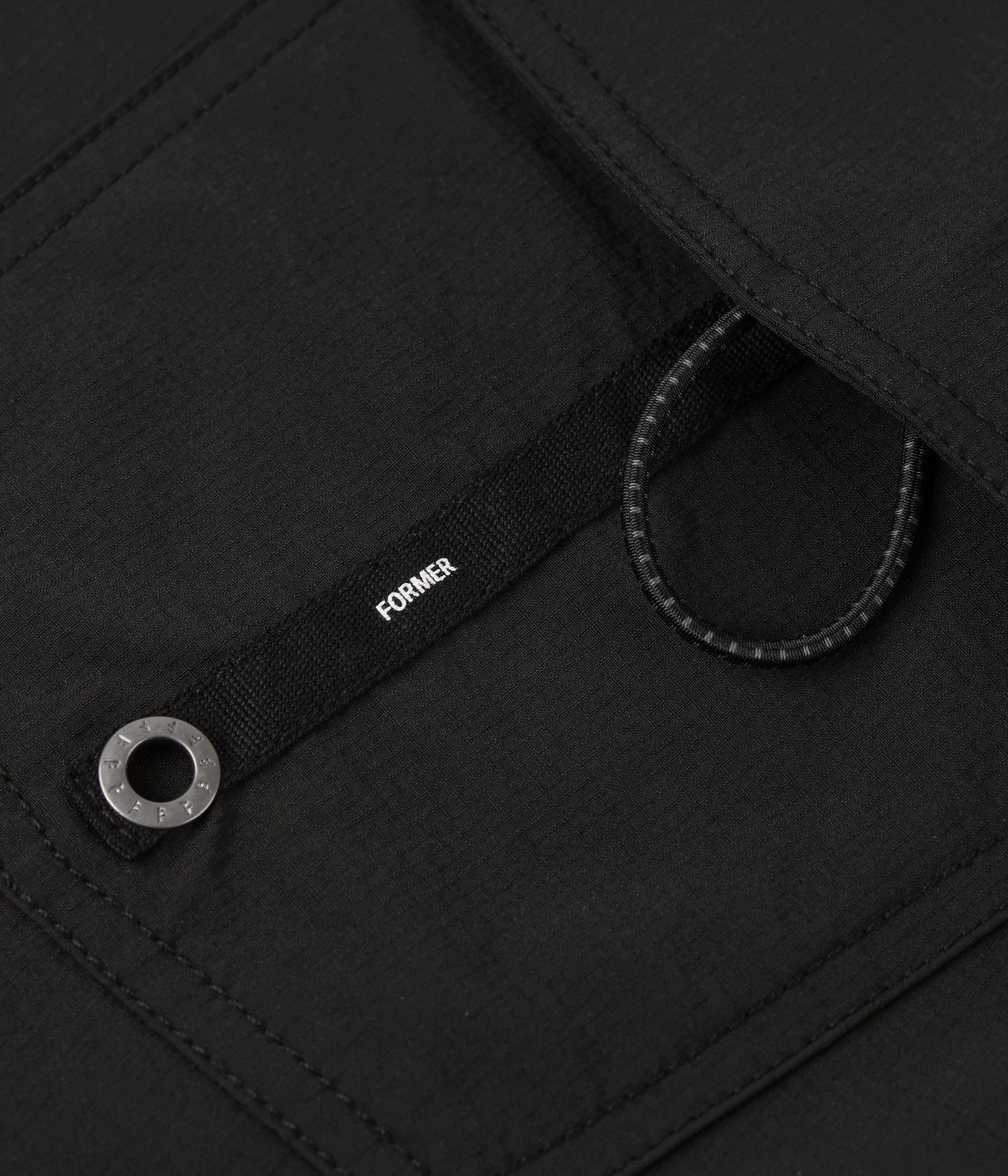 Constructed from a premium nylon-spandex blend (93% nylon 7% spandex) 4-way stretch ripstop fabric. Delivered in our System 19" fit. Featuring sublimated side panel FORMER artwork, signature velcro back patch pocket with FORMER webbing and eyelet, side panel sublimation graphic, signature FORMER Crux woven label, drawcord closure with Franchise F metal aglets, elastic key loop, and fixed waist.