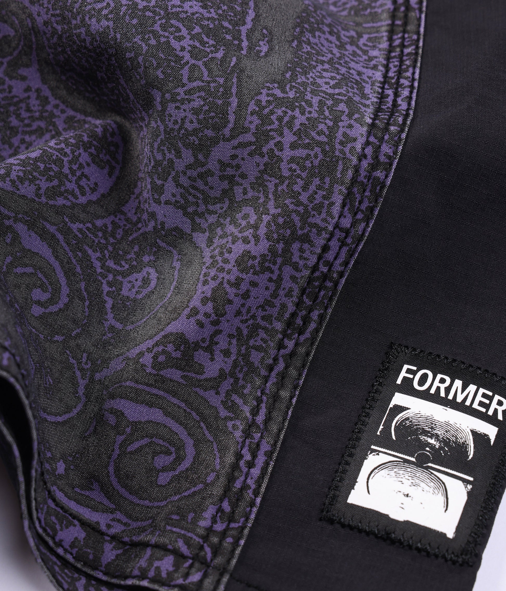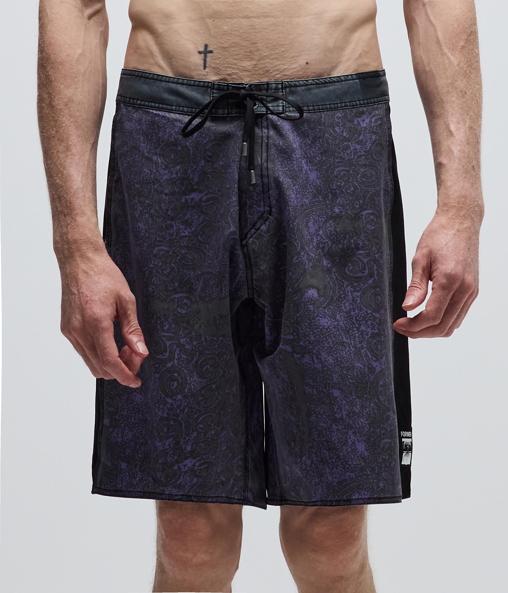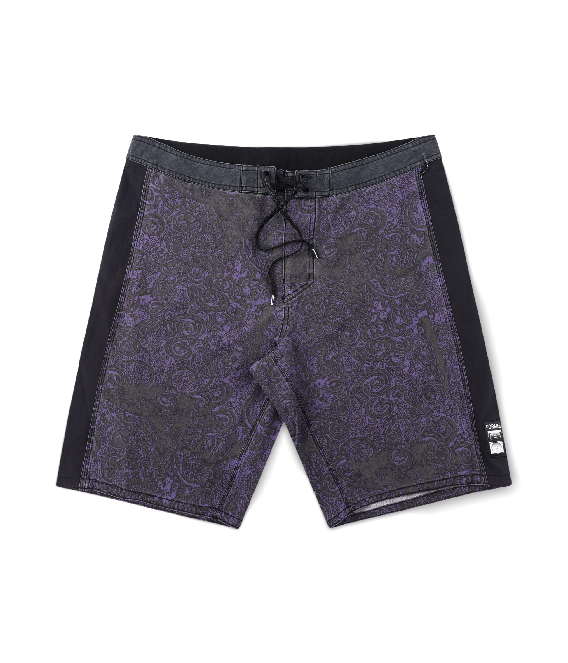Constructed from a premium 4-way stretch fabric and delivered in our 19" leg length. Featuring an all over seasonal yardage in a pigment dye wash for a vintage looking finish, contrast ripstop side panels, secure velcro back patch pocket with FORMER eyelet, and drawcord closure.
