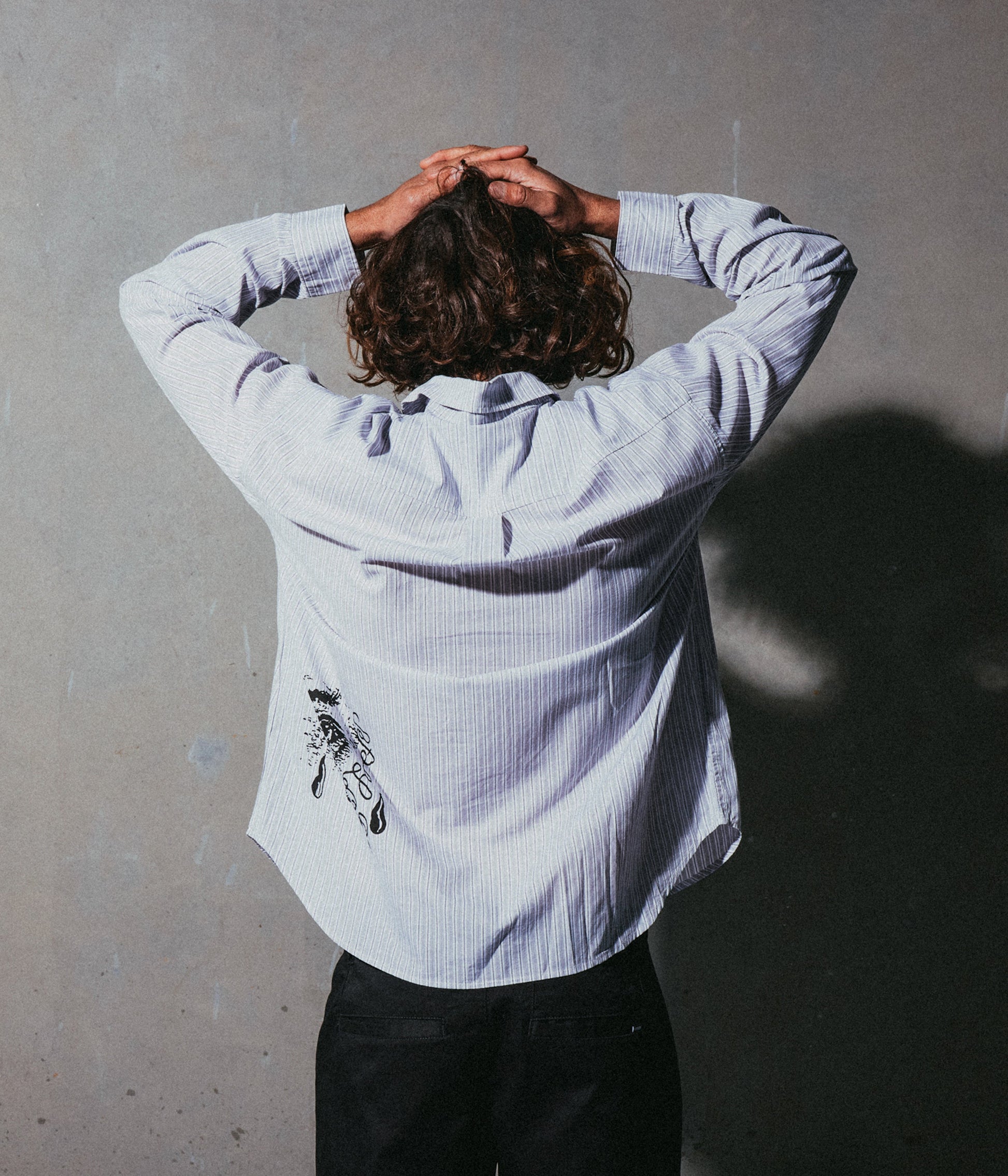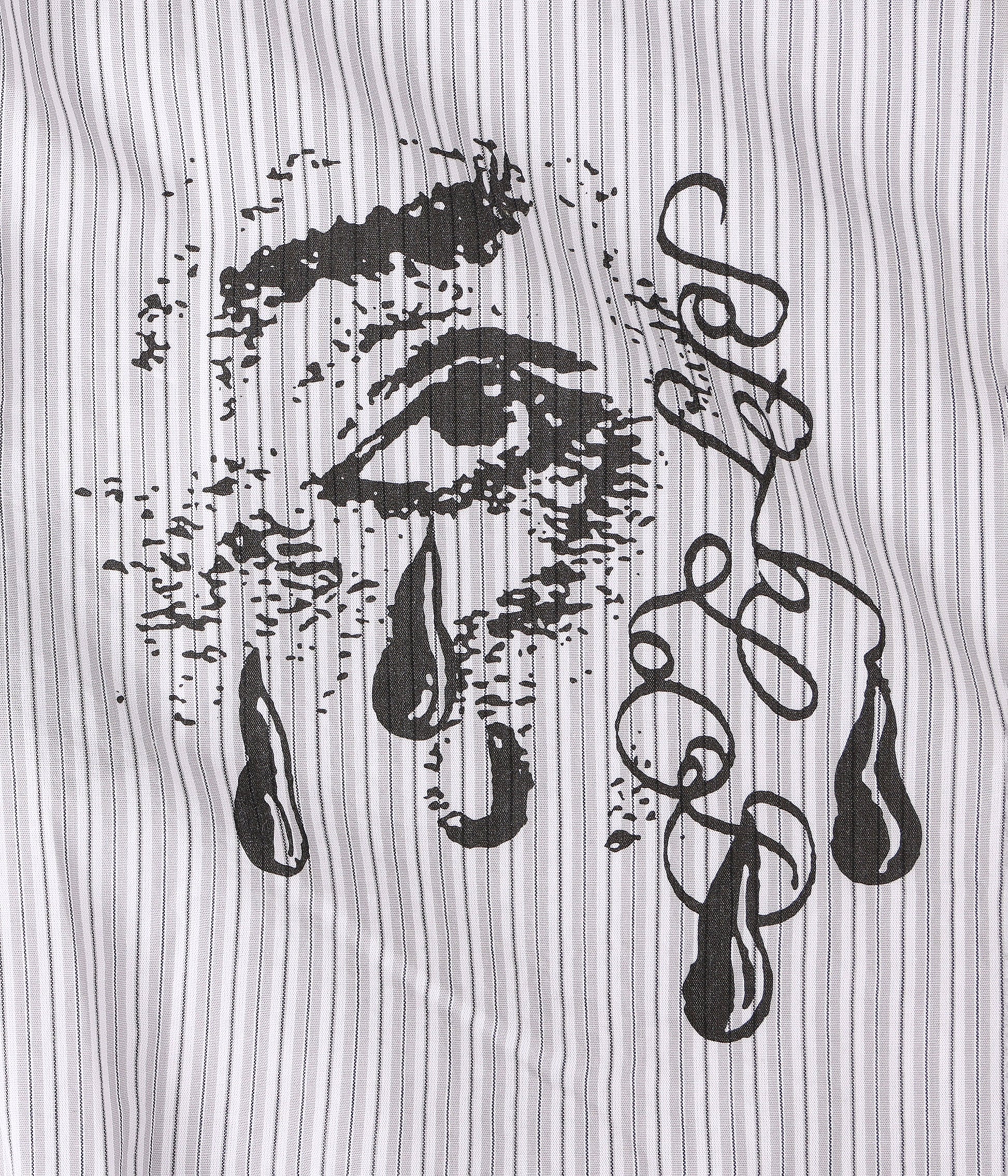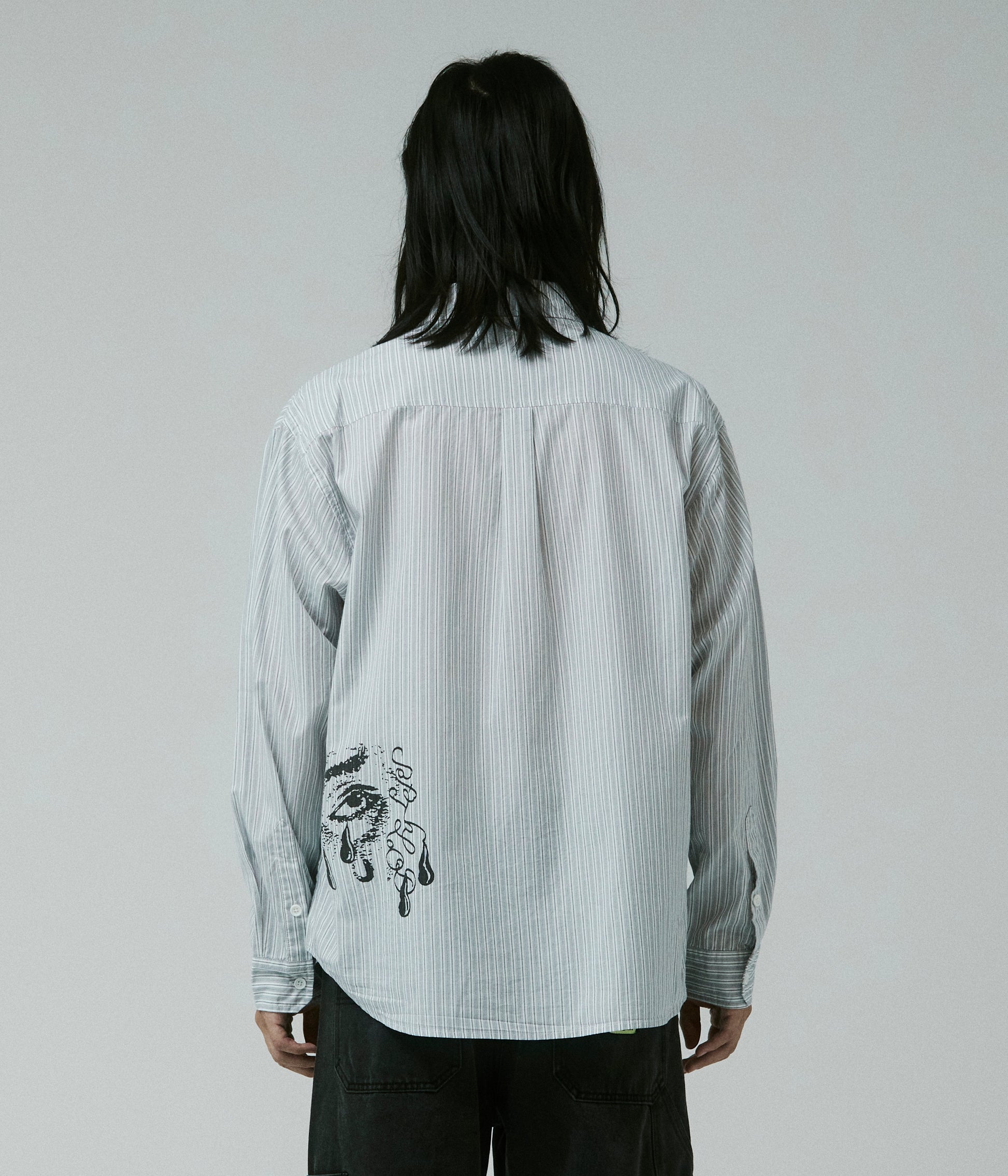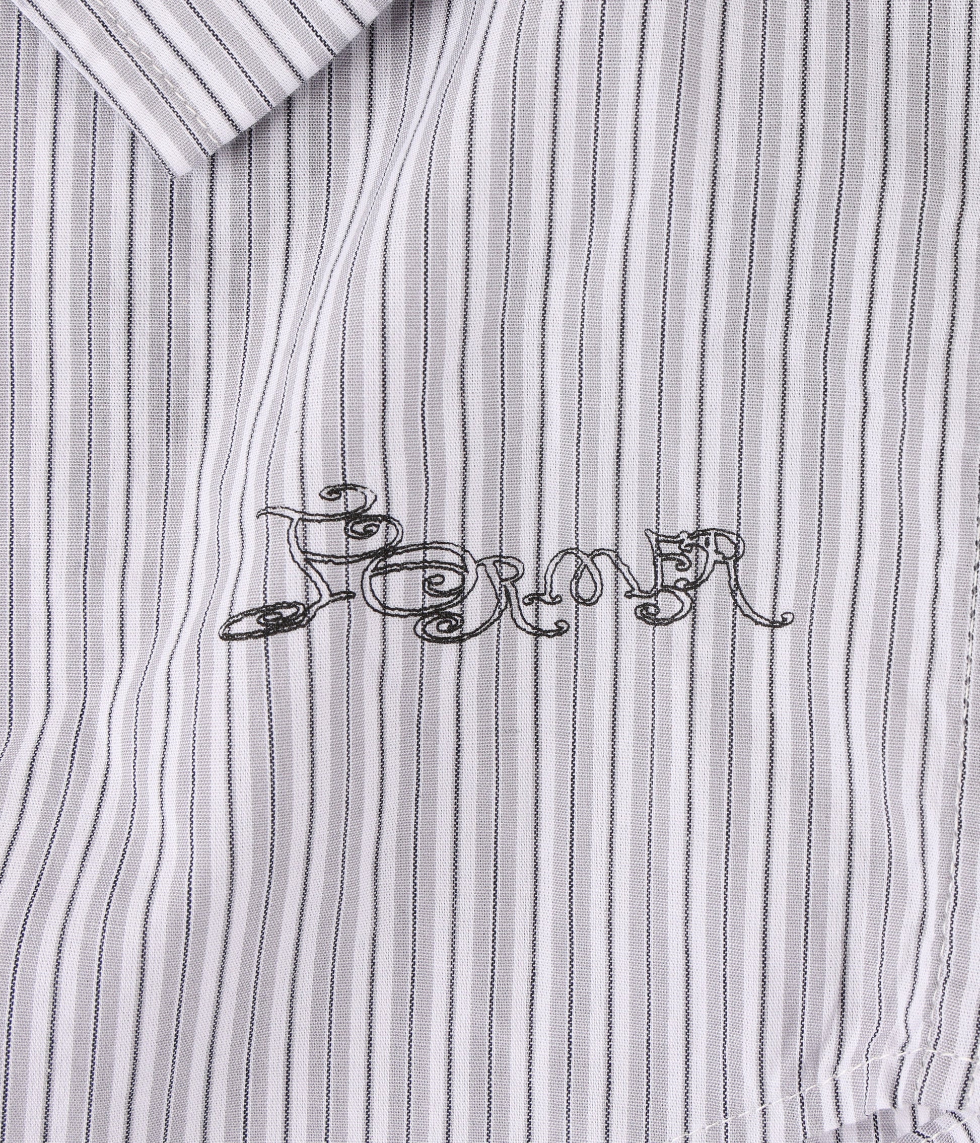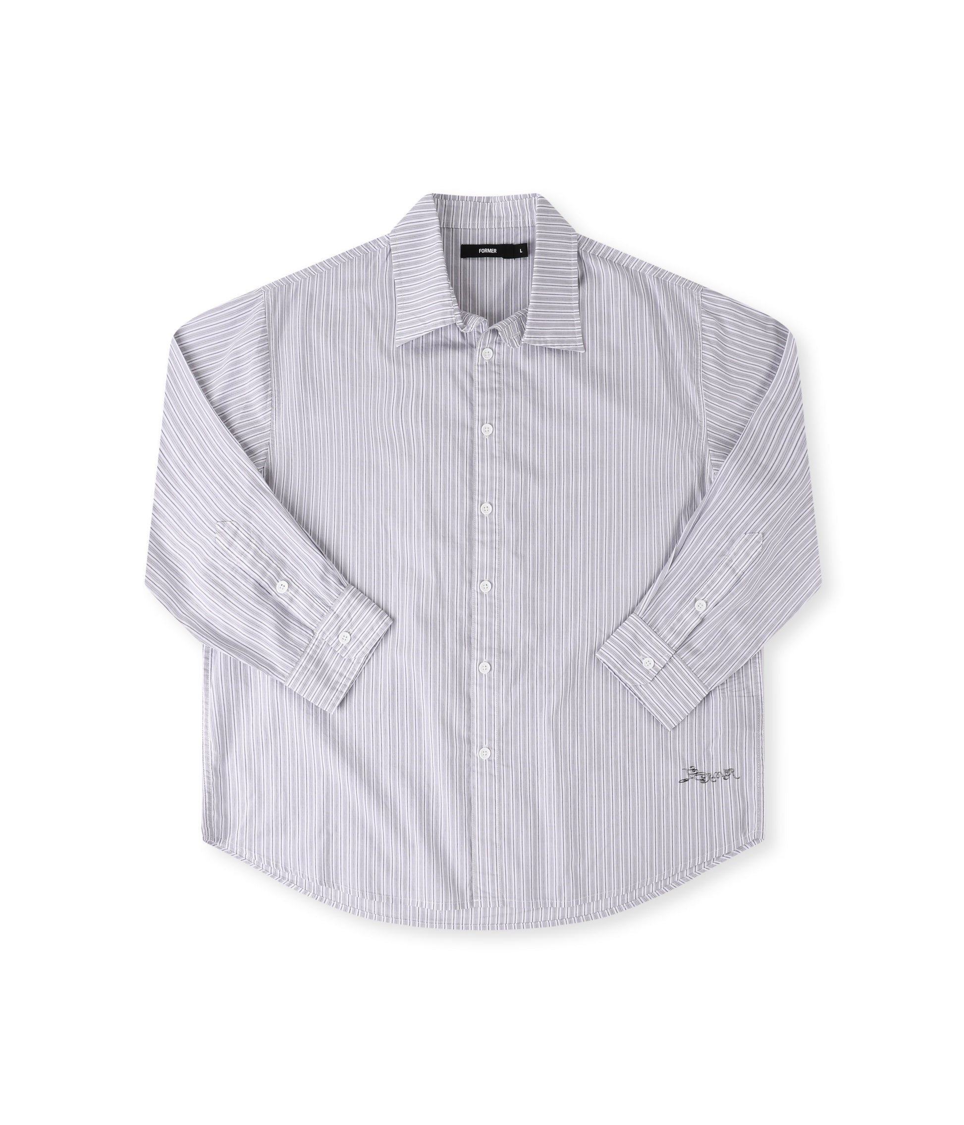 Crafted in 100% cotton with a yarn-dyed stripe pattern and delivered in our standard FORMER Vivian shirt fit. Featuring front & back graphic screen print on hip and button closure.